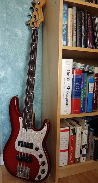 What was once a ‘modern’ Precision is now more of a Jazz Bass, sporting a John East preamp and a pair of Nordstrand Fat Stack pickups in 60’s Jazz Bass locations. I also had smaller frets installed and filed very low. This bass is fast becoming my ‘go-to’ bass.The modifications were done by luthiers Bill DeLap and Rick McKee.